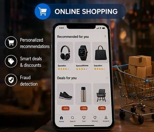 AI helps by recommending products based on previous searches, displaying personalized ads, and predicting customer preferences. This makes shopping faster and more convenient for users.