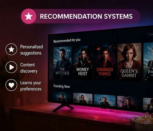 Platforms like Netflix and YouTube use AI to recommend content based on user preferences.