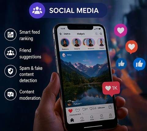 AI is used to show relevant posts, suggest friends, detect spam, and filter harmful content. This helps keep platforms engaging and safe for users.
