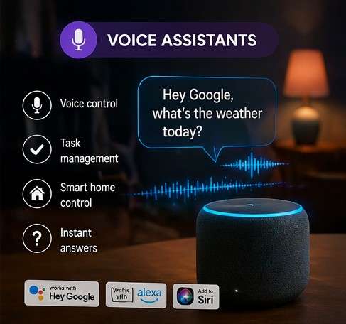 These devices use AI to automate daily routines, such as adjusting lighting or temperature based on user habits. Over time, they become more personalized and efficient in responding to user needs.