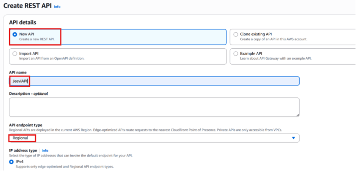 4.Enter API Name as JeeviAPI and Click on Create API button.