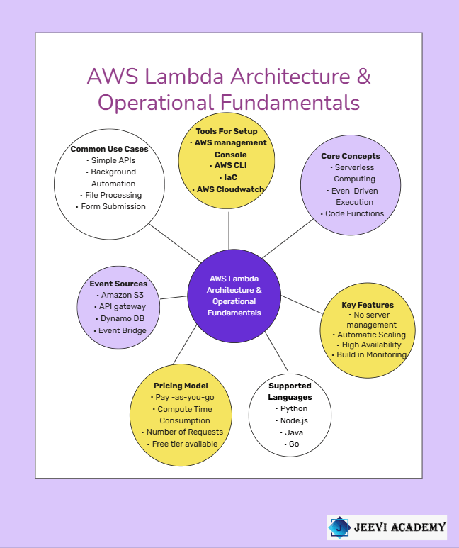 AWS Lambda is a serverless computing service provided by Amazon Web Services that allows developers to run code without having to manage servers, making it an ideal starting point for beginners in cloud computing. With Lambda, developers can focus on writing code while AWS automatically handles the infrastructure, including provisioning, scaling, and managing the underlying servers. This eliminates much of the complexity and overhead associated with traditional server-based applications. AWS Lambda executes code in response to events, which can come from many sources such as Amazon S3, API Gateway, DynamoDB, EventBridge, or even direct function calls.