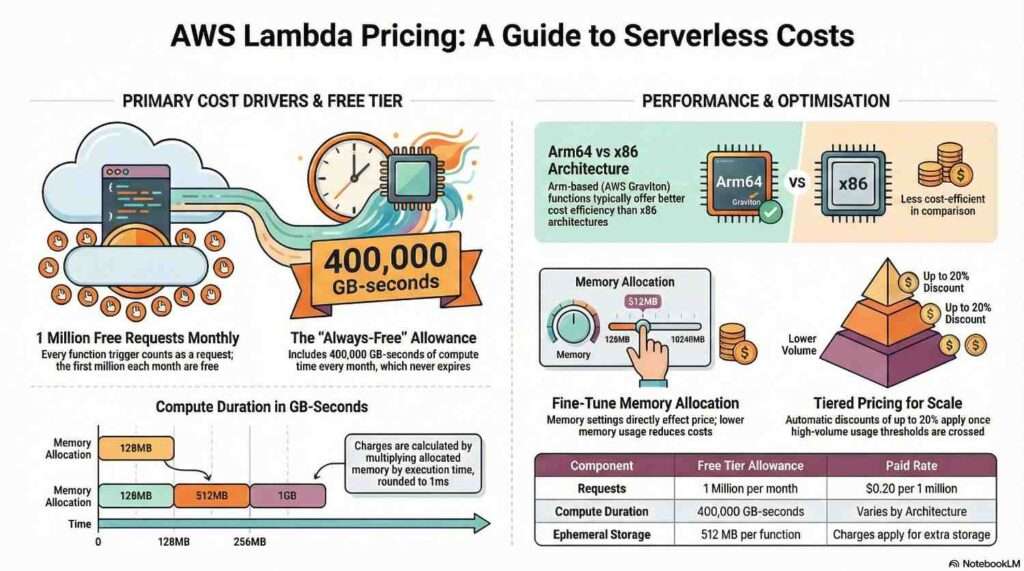 While additional options like provisioned concurrency and extra storage can increase expenses, they also provide performance benefits when used strategically. Overall, understanding how AWS Lambda pricing works enables teams to design efficient serverless architectures, make informed cost decisions, and maximize the value of cloud resources.