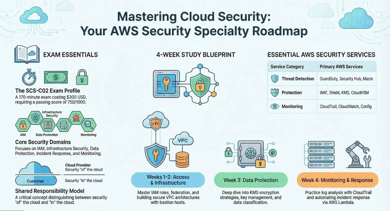 In this guide, you’ll learn everything about the AWS Security Specialty certification, including exam details, skills required, study resources, and preparation tips.