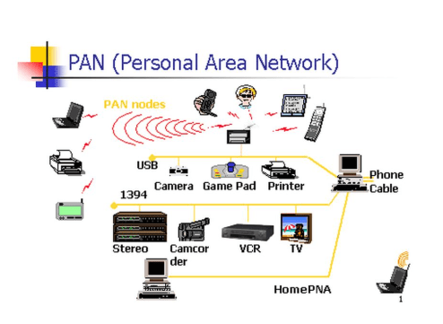 1. Personal Area Network (PAN) – Small network for personal use (e.g., Bluetooth).