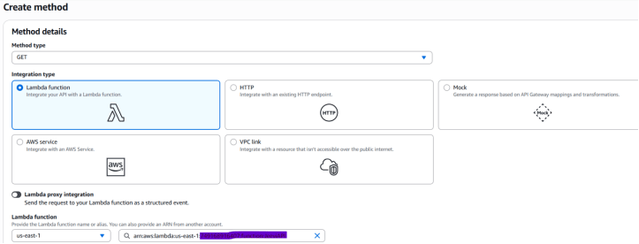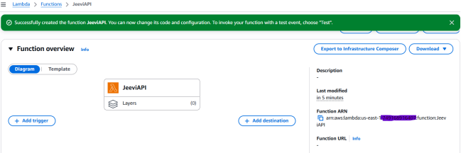 5. In the Lambda Function field, type the function name — for example, JeeviAPIs.