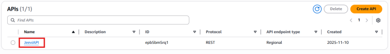 - Once your API is created, select it from the list (for example, JeeviAPI).