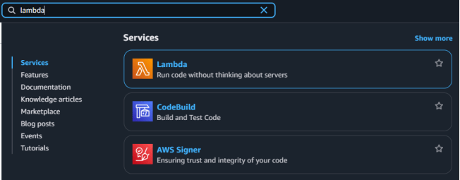 2. Navigate to the services menu and click on the Lambda under the computes section.