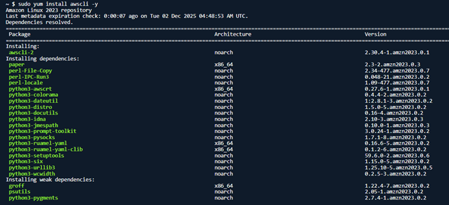 sudo yum install awscli -y