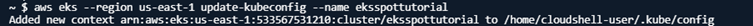 aws eks --region us-east-1 update-kubeconfig --name eksspottutorial