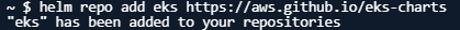 helm repo add eks https://aws.github.io/eks-charts