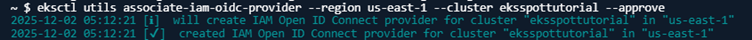 eksctl utils associate-iam-oidc-provider --region us-east-1 --cluster eksspottutorial --approve
