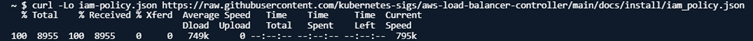curl -Lo iam-policy.json https://raw.githubusercontent.com/kubernetes-sigs/aws-load-balancer-controller/main/docs/install/iam_policy.json