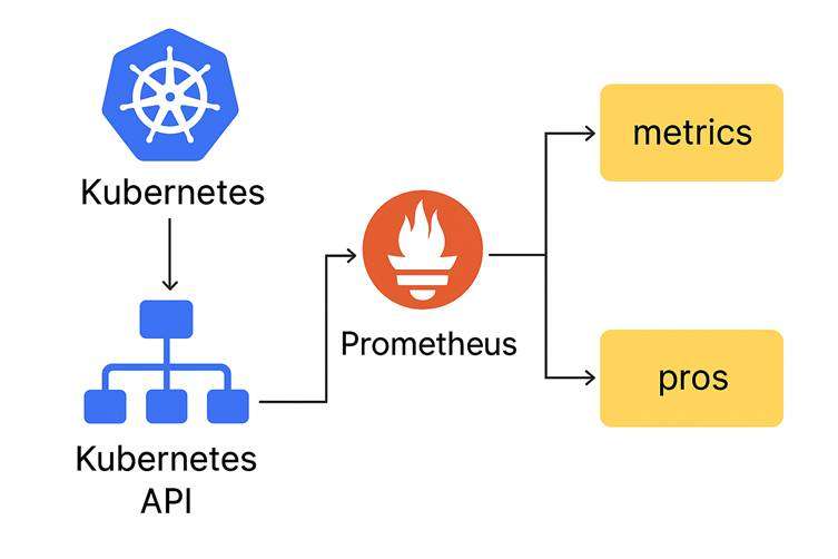 • Prometheus collects metrics (like CPU usage, memory usage, and pod status) from your applications and Kubernetes components.