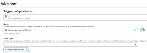 - Bucket: Choose your source bucket — mysourcebucket1234567