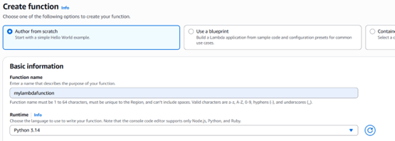 ii) Function Name: Enter mylambdafunction.