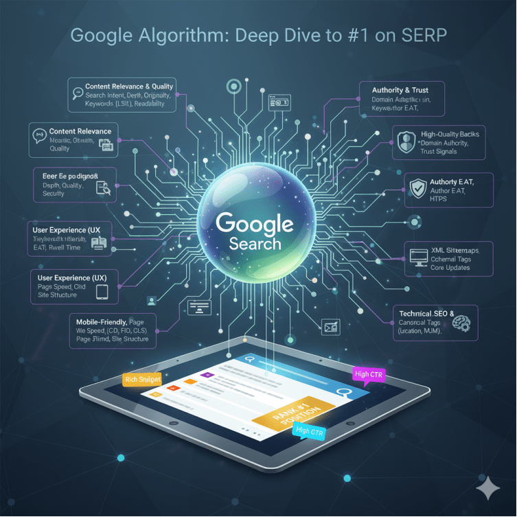 Google’s algorithm uses hundreds of ranking factors to decide which page appears first when someone searches.