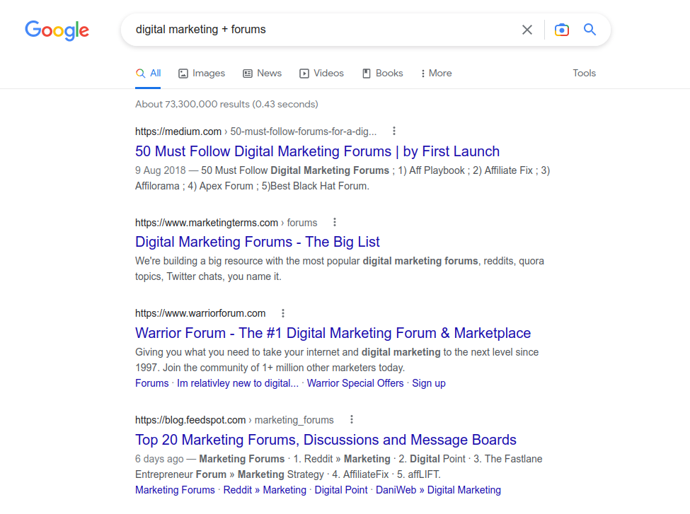 First, Use Google to try and test keyword combinations like the name of your niche. This is not rocket science. You have to do it manually. It may take a couple of minutes to do it but it’s a pretty cool way to really come up with dozens or maybe even hundreds of Web sites that are active within your niche market.