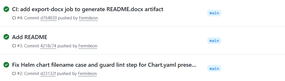 • .github/workflows/ci.yml — CI pipeline: Docker build, Helm lint, k8s YAML checks, DOCX export.