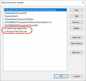 Finally, ensure that the Windows Path Environment Variable is having the paths of Vagrant and Git, as shown below. If not found, add the same manually.