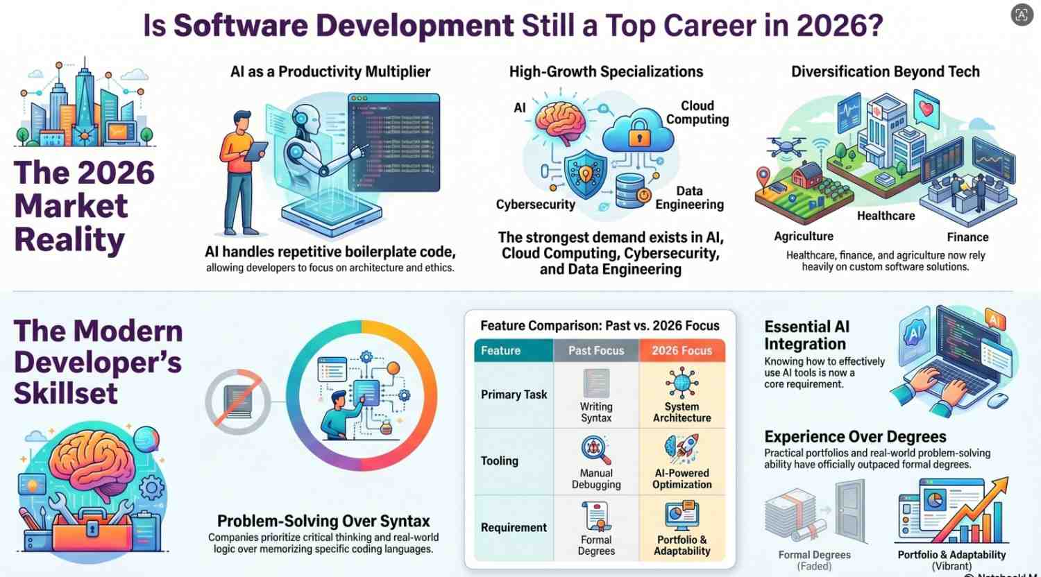 In a world shaped by rapid technological evolution, one question keeps surfacing among students, career switchers, and even experienced professionals: Is software development still a good career in 2026? With the rise of automation, artificial intelligence, and no-code platforms, it’s a fair concern. But the short answer is yes software development remains one of the most promising and resilient career paths today. The long answer, however, is more nuanced and worth exploring in depth