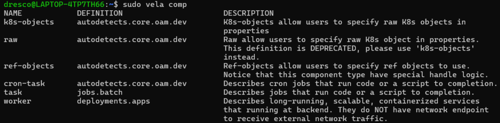 - Displays built-in KubeVela component types