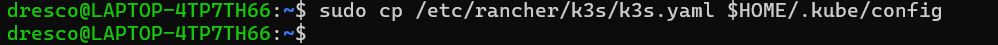 sudo cp /etc/rancher/k3s/k3s.yaml $HOME/.kube/config