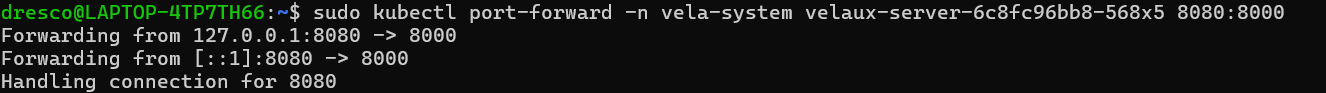 sudo kubectl port-forward -n vela system velaux-server-6c8fc96bb8-568x5 8080:8000