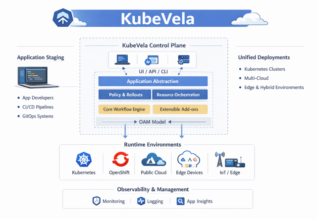 KubeVela is an open-source, modern application delivery platform built on top of Kubernetes and based on the Open Application Model (OAM). Instead of forcing developers to manage low-level Kubernetes objects, KubeVela allows applications to be treated as first-class objects, making deployment and operations simpler, clearer, and more consistent