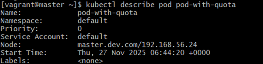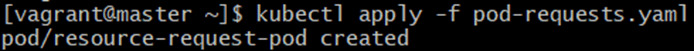 - This YAML file defines a Pod with resource requests, i.e., how much CPU and memory a container requests from Kubernetes.
