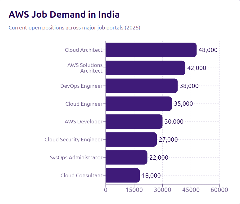In today’s cloud-first era, AWS dominates the cloud computing landscape with over 32% market share. The global cloud computing market, valued at approximately ₹380 lakh crore in 2024, is expected to reach ₹850 lakh crore by 2030. As organizations worldwide migrate to AWS for scalability and innovation, the demand for AWS-certified professionals is surging, with cloud-related jobs projected to grow by over 40% in the coming years.