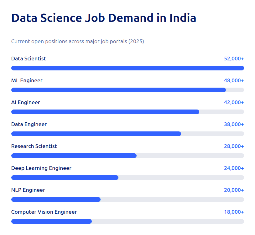 With companies worldwide relying on data-driven decision making, Data Scientists have become some of the most sought-after professionals. According to LinkedIn, Data Science is among the top 3 fastest-growing careers, with job roles like Data Analyst, Machine Learning Engineer, AI Specialist, and GenAI Developer seeing exponential demand.