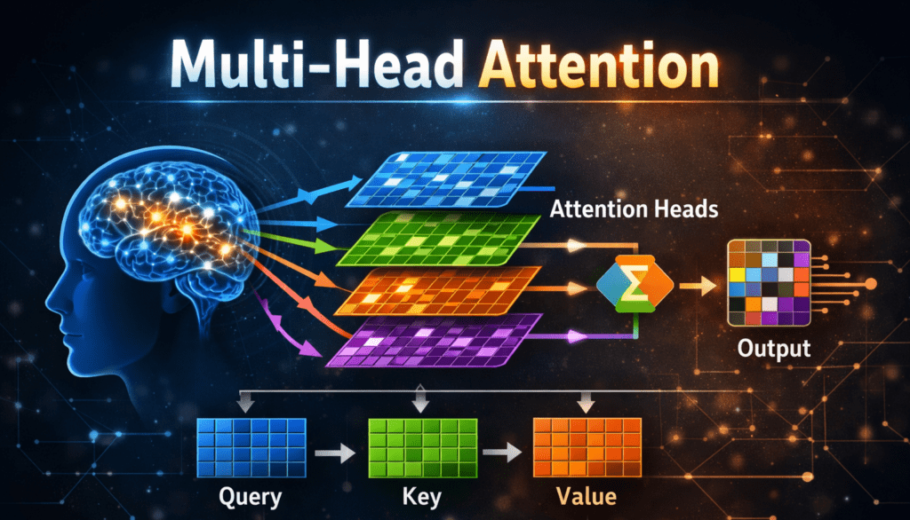 Multi-Head Attention allows AI models to understand language deeply by viewing sentences from multiple perspectives at the same time. This powerful idea is a key reason why Transformer-based models outperform traditional NLP systems.