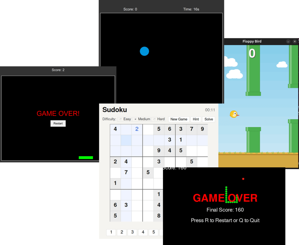 At our Summer Tech Camp, learning goes beyond theory β students actively build a variety of exciting projects including games, mini apps, and basic AI tools. From classic games like Snake to other fun and interactive creations, each project helps students understand core programming concepts such as logic building, loops, conditions, and real-time interaction.