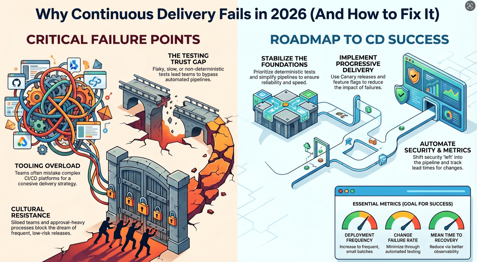 Continuous Delivery still fails in 2026 not because the idea is flawed, but because its implementation often is.